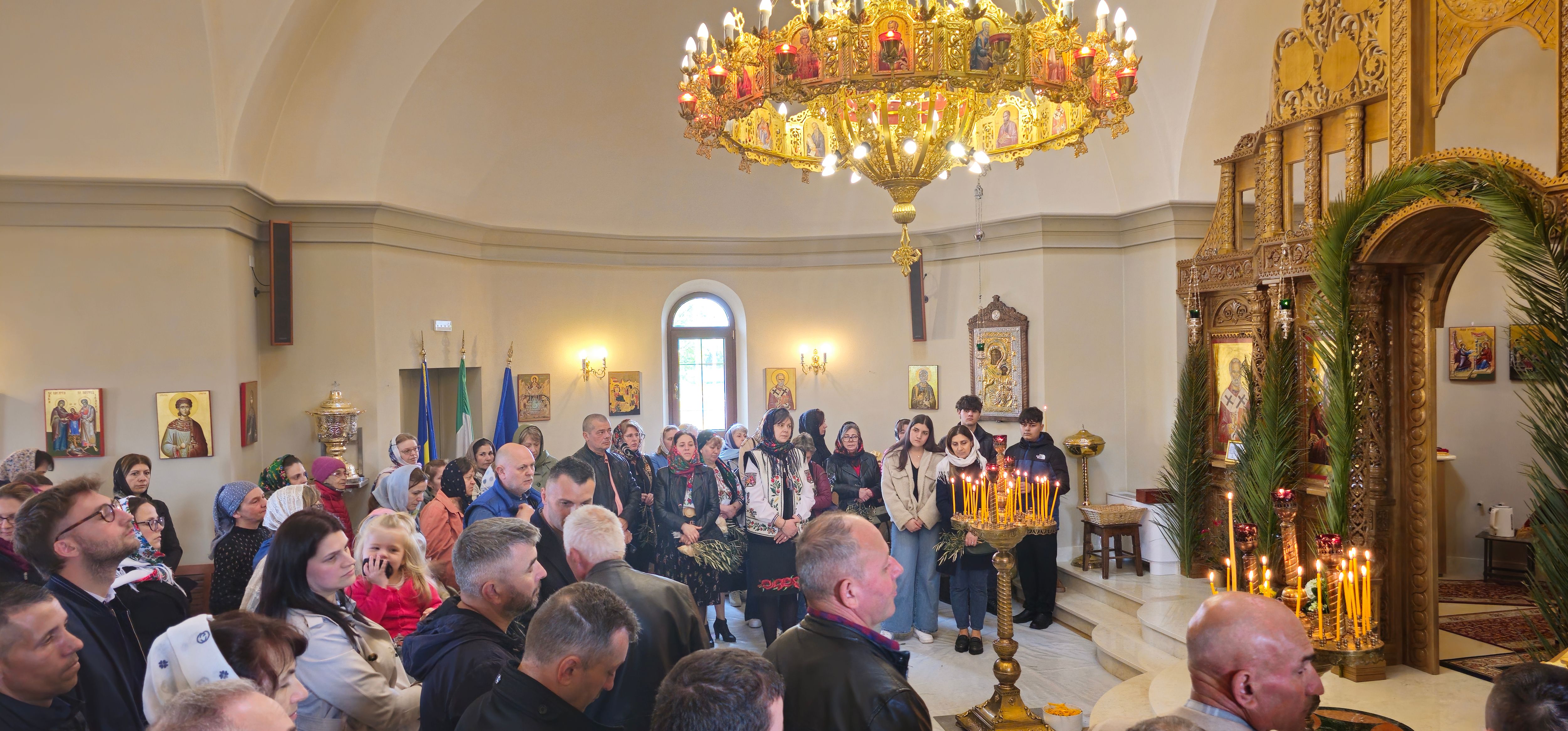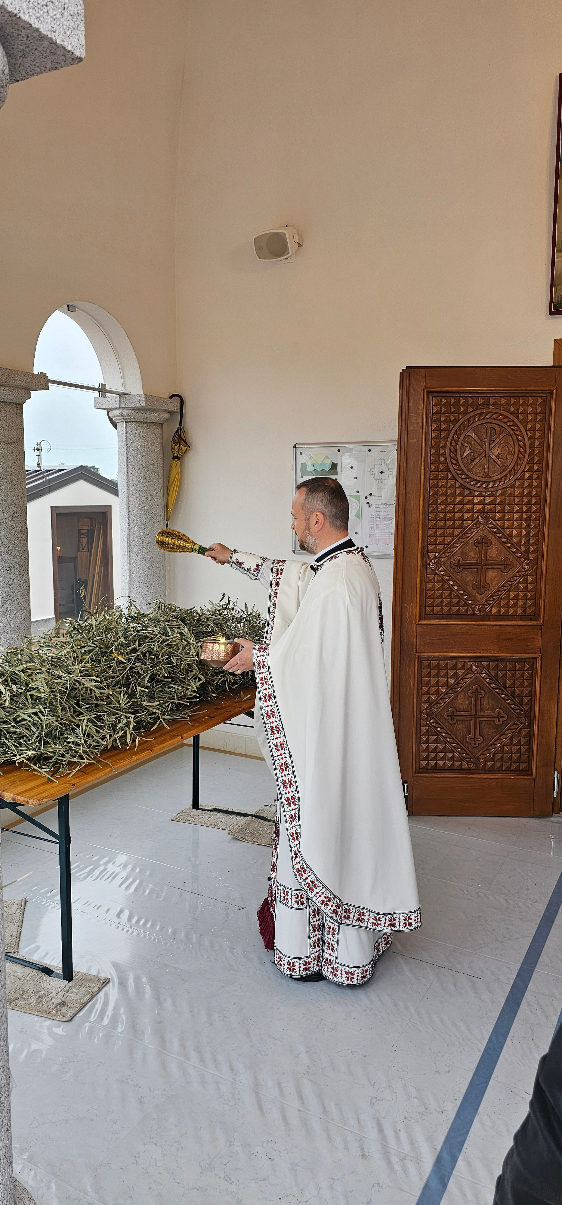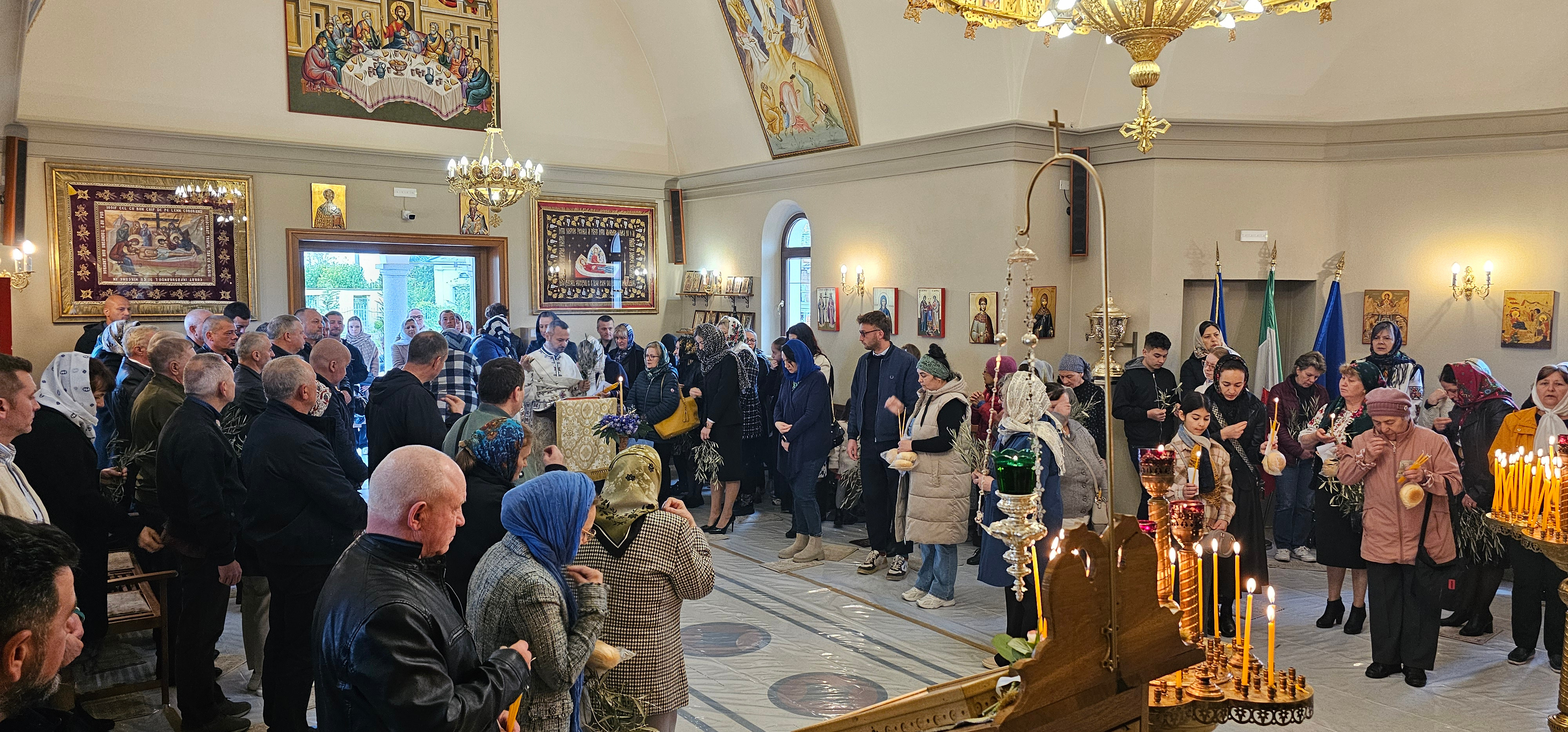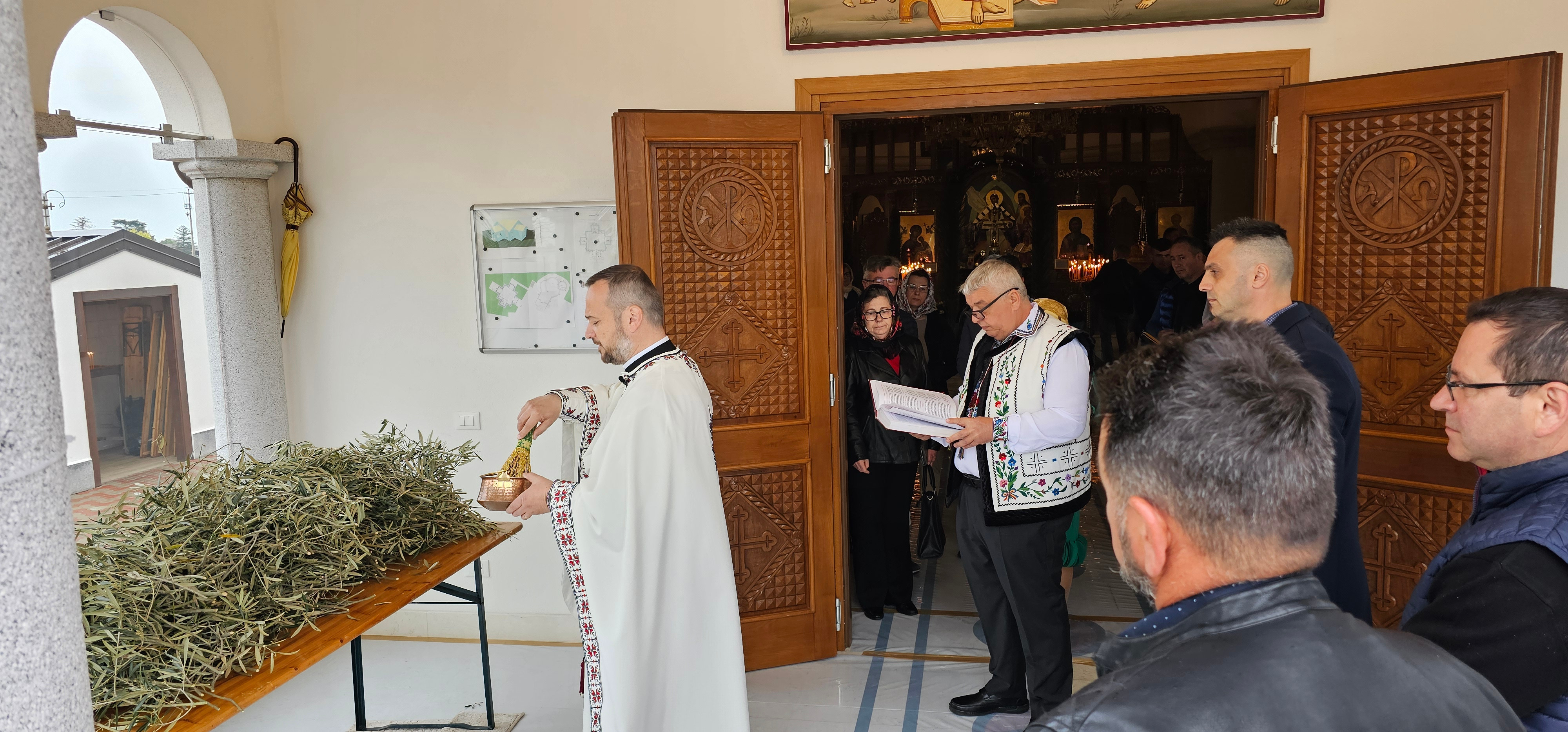A doua zi, mulţimea cea mare, care se adunase la sărbătoare, auzind că Iisus vine în Ierusalim, a luat ramuri de finic şi a ieşit întru întâmpinarea Lui şi striga: Osana! Binecuvântat este Cel ce vine întru numele Domnului, Împăratul lui Israel!