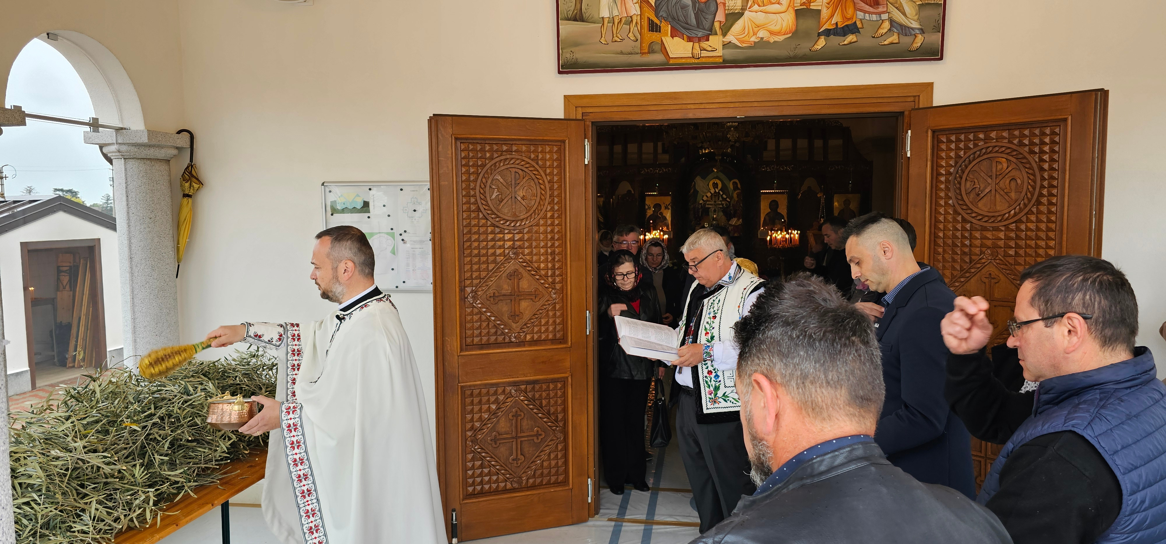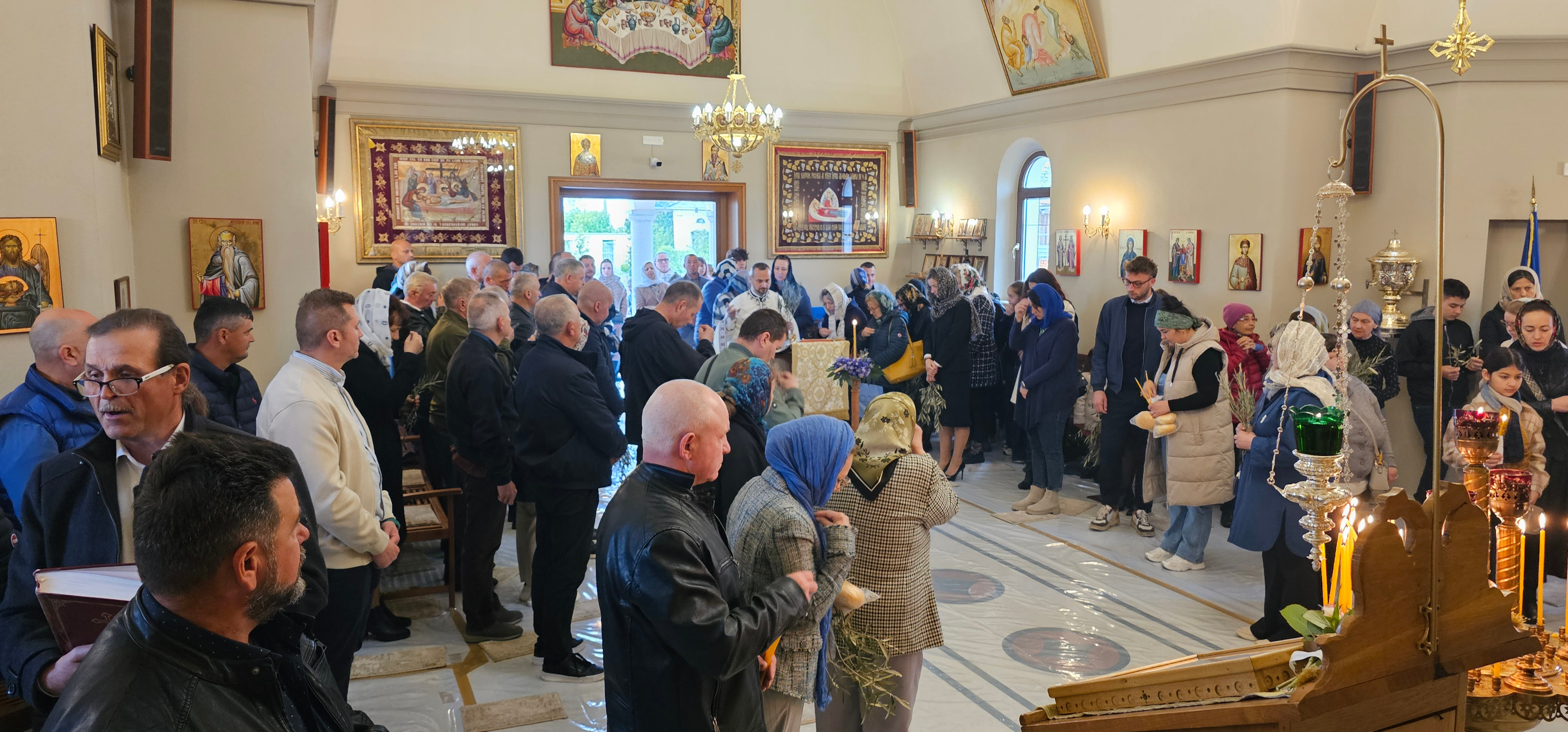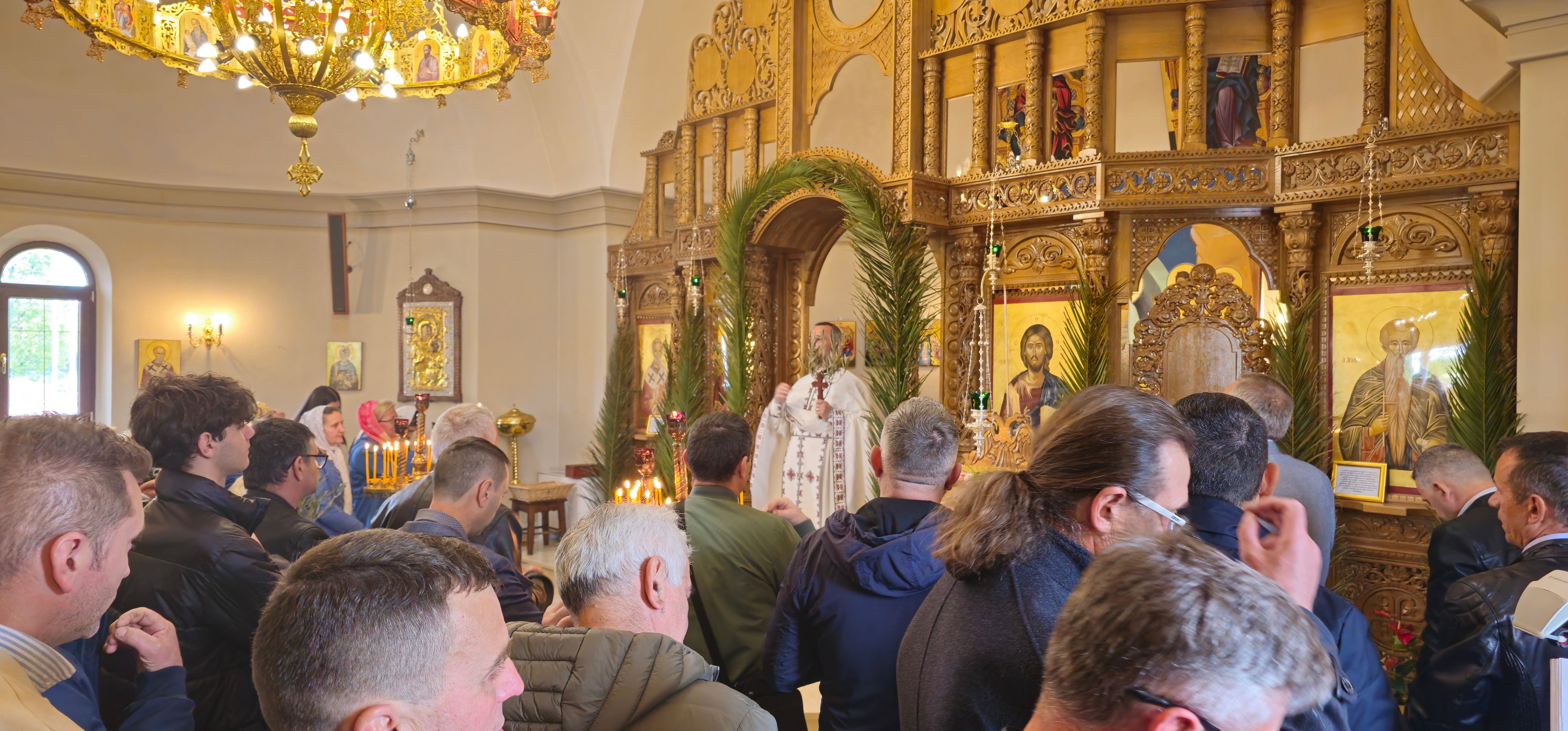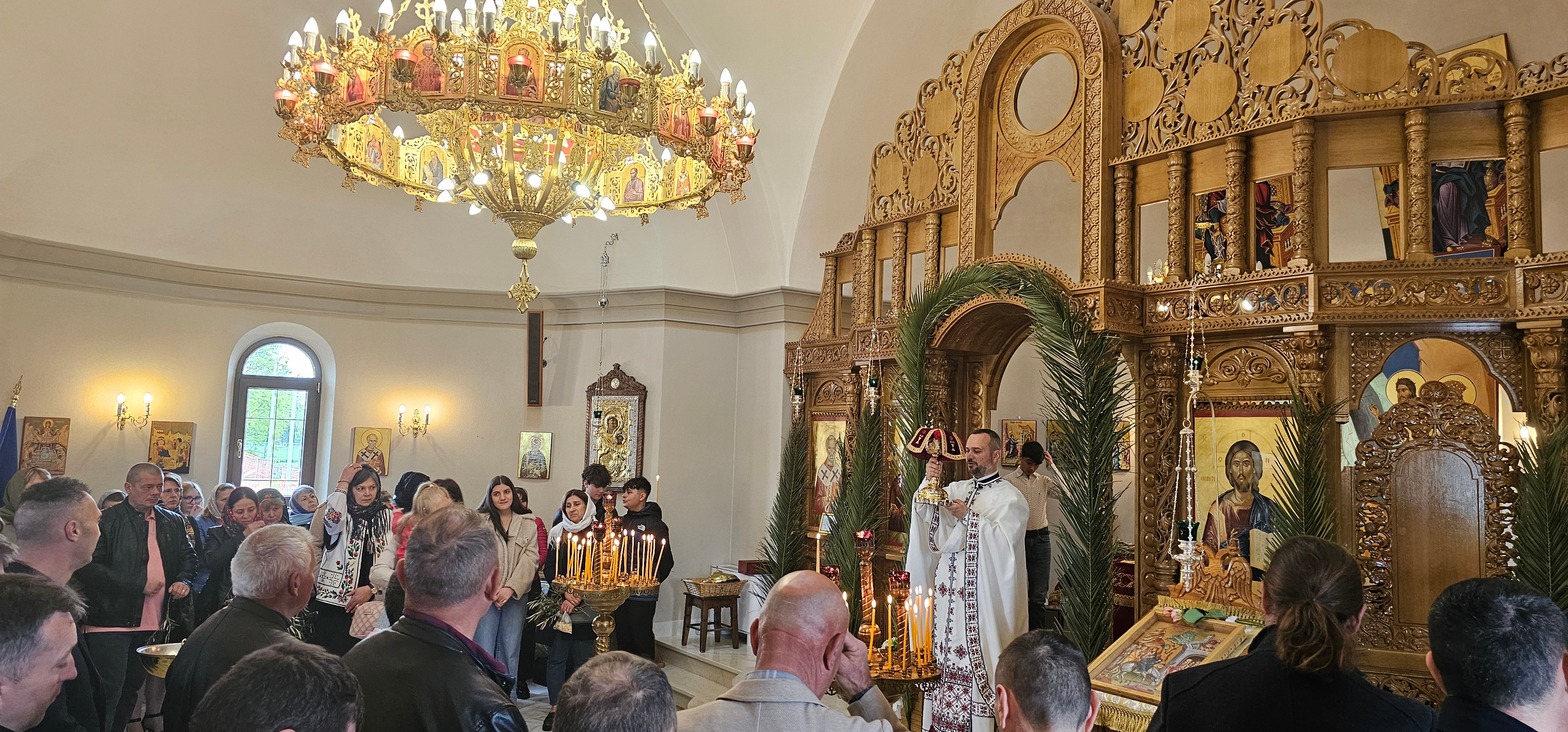 A doua zi, mulţimea cea mare, care se adunase la sărbătoare, auzind că Iisus vine în Ierusalim, a luat ramuri de finic şi a ieşit întru întâmpinarea Lui şi striga: Osana! Binecuvântat este Cel ce vine întru numele Domnului, Împăratul lui Israel!