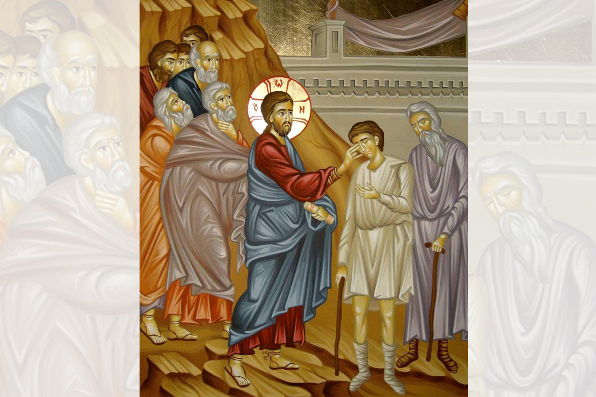 În vremea aceea, pe când trecea Iisus, doi orbi se țineau după El, strigând şi zicând: Miluiește-ne pe noi, Fiule al lui David! Iar după ce a intrat în casă, au venit la El orbii şi Iisus i-a întrebat: