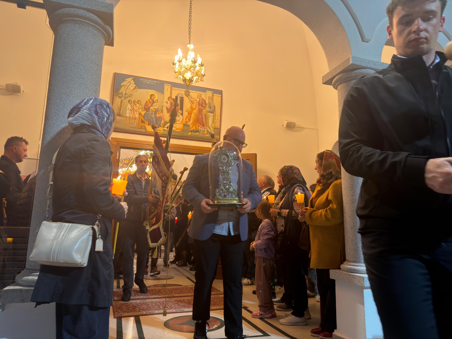 Încă de la începutul slujbei, centrul bisericii a devenit locul de pelerinaj al sufletelor însetate de Dumnezeu. Credincioșii, de la copii de câțiva ani până la bătrâni împovărați de ani dar întăriți de credință, au venit pe rând să se închine și să treacă pe sub Sfântul Epitaf (Sfântul Aer). Acest gest simbolic, reprezentând intrarea în mormânt împreună cu Hristos pentru a putea învia alături de El, a fost marcat de o emoție colectivă vizibilă. Rândul de oameni s-a întins mult în afara lăcașului de cult, dând mărturie despre unitatea și fervoarea diasporei românești din această regiune a Italiei.